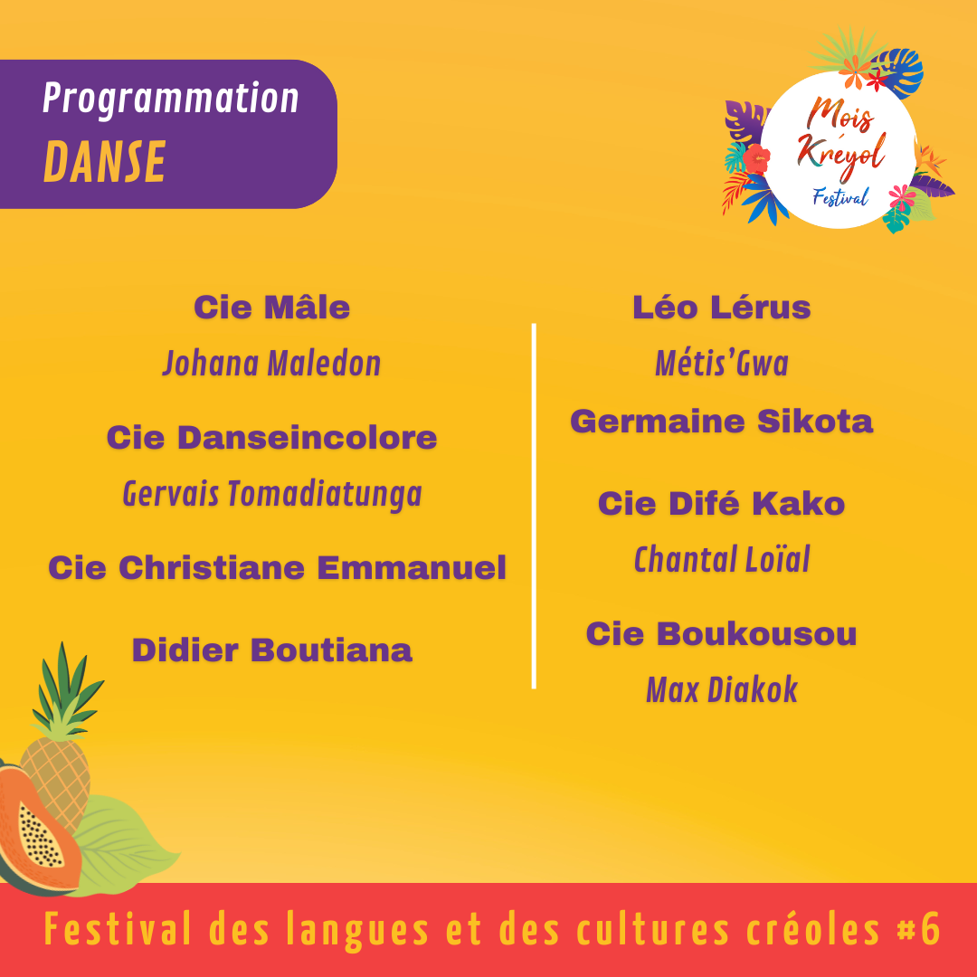 Porté par la compagnie Difé Kako dirigée par la chorégraphe guadeloupéenne Chantal Loïal, le "Mois kréyol", festival des langues et des cultures créoles se déroulera du 8 octobre au 27 novembre 2022 et aura pour thème principal "Carnaval des saveurs". Une 6ème édition, riche en activités culturelles et qui se poursuivra à partir de décembre 2022 en Martinique, Guadeloupe et Guyane. Une invitation au voyage à travers les sens et les héritages de nos peuples d'origine avec des temps forts festifs chargés de souvenirs autour du patrimoine matériel et immatériel révélant les traditions et la mémoire des cultures créoles.