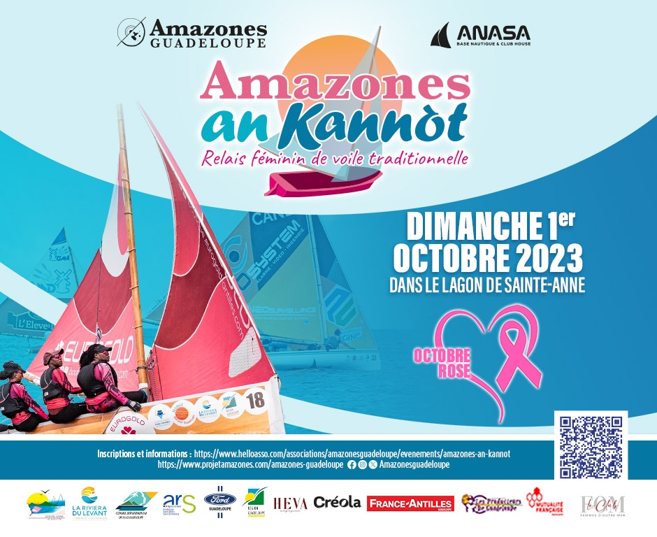 C’est dans ce cadre et à l’occasion « d’Octobre rose », le mois dédié à la sensibilisation au dépistage du cancer du sein, que Amazones Guadeloupe, une association fondée en 2019, dont les membres ont pour volonté « d’être des acteurs visibles et bienveillants de leur parcours de soins en cancérologie » et qui se sont donnés pour mission « d’accompagner, de sensibiliser etd’informer », a décidé de s’unir à l’Anasa qui participe depuis 30 ans au développement de la voile traditionnelle et à la promotion du nautisme, pour proposer un relais féminin de voile traditionnelle baptisé « Amazones en Kannot ».