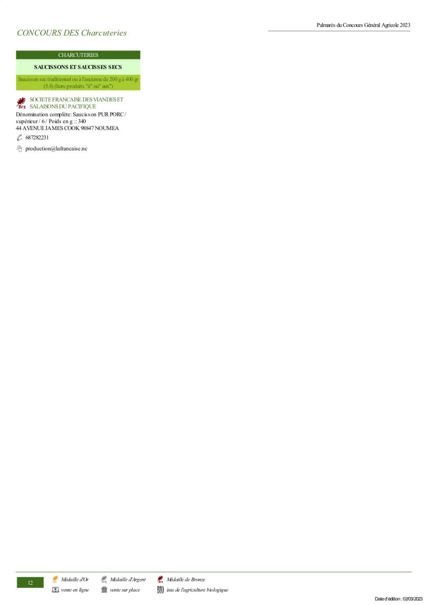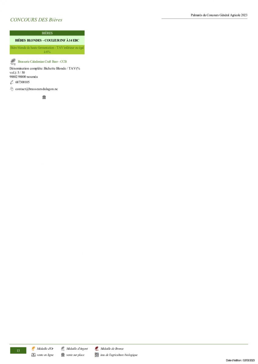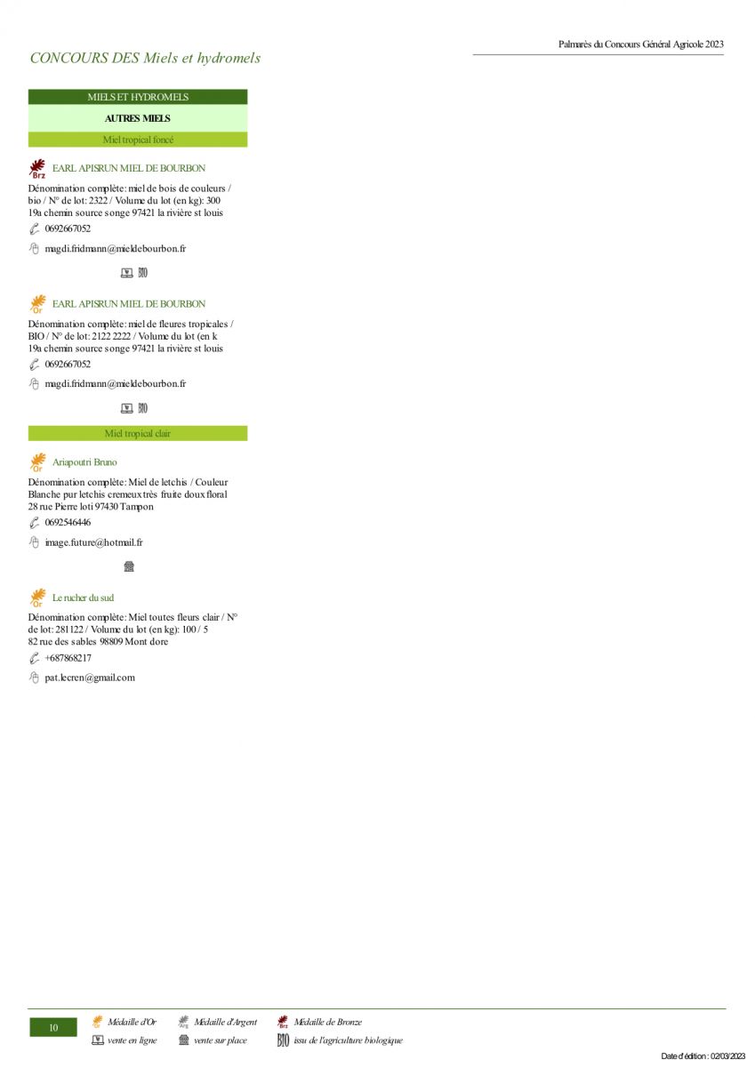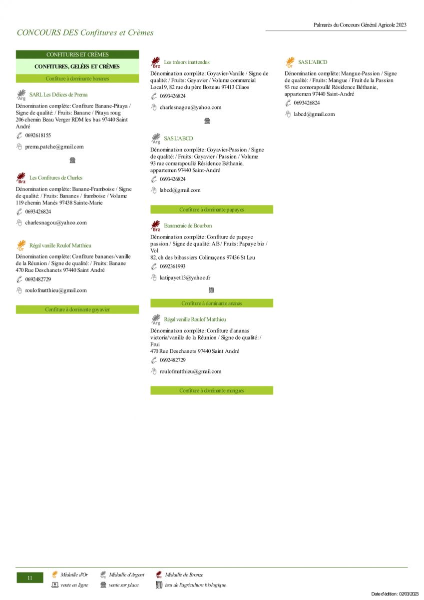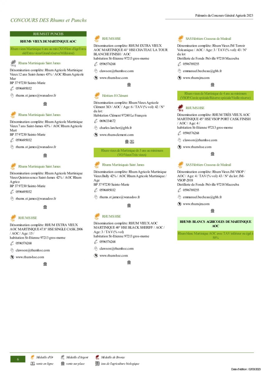 Parmi ces dernières : deux pour les confitures de La Réunion, deux pour les vanilles de Polynésie, trois pour les miels, dont un de La Réunion et un de Nouvelle-Calédonie, 31 pour les rhums et punch, dont huit de Guadeloupe, 17 de Martinique, quatre de La Réunion, un de Polynésie et un de Guyane). À noter également une médaille d’argent pour la vanille IGP de La Réunion et une médaille en argent pour la vanille de Mayotte, et une médaille d'argent en rhum pour la Polynésie.
