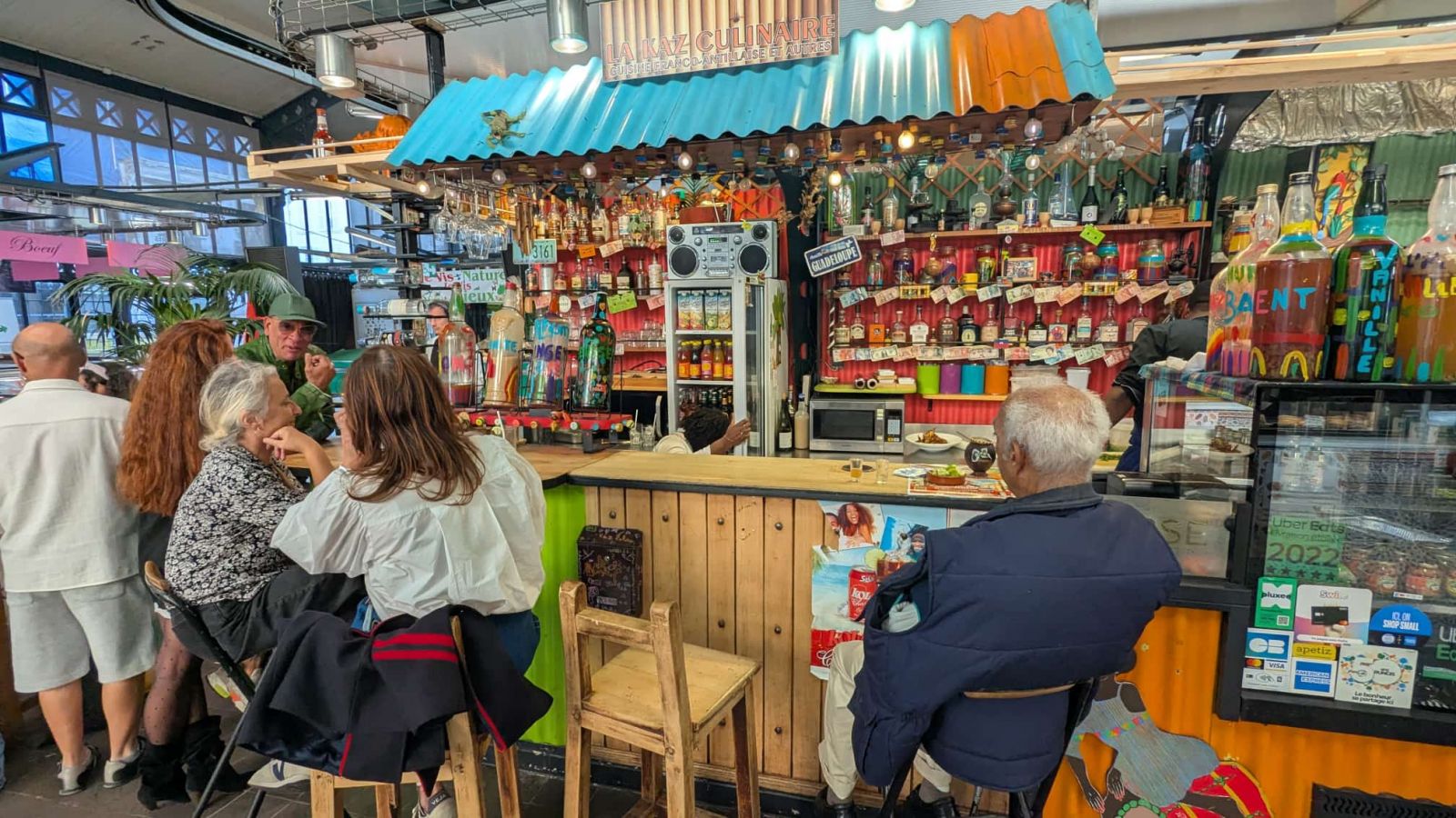 Il faut traverser le marché, se faufiler entre les étals de fruits et légumes, de fromages et de charcuteries, les traiteurs aux saveurs du monde, les bouquets de fleurs… Suivre les bonnes odeurs qui réveillent des souvenirs d’enfance, se laisser guider par une musique entraînante, afin d’arriver à bon port : le kiosque où les Outre-mer ont trouvé leur place dans le 18ᵉ arrondissement de Paris, La Kaz Culinaire. Derrière ce comptoir aux allures de cuisine familiale, Jessy Rosier s’active. Voilà bientôt huit ans qu’avec sa femme ils ont posé leurs valises dans ce quartier populaire et cosmopolite, qu’ils affectionnent particulièrement pour sa mixité et son énergie. « Ici, on a de tout : des Antillais, des métros, des jeunes, des anciens, même des Hollandais », raconte-t-il. Un brassage à l’image de sa cuisine, ouverte, généreuse et sans frontières.