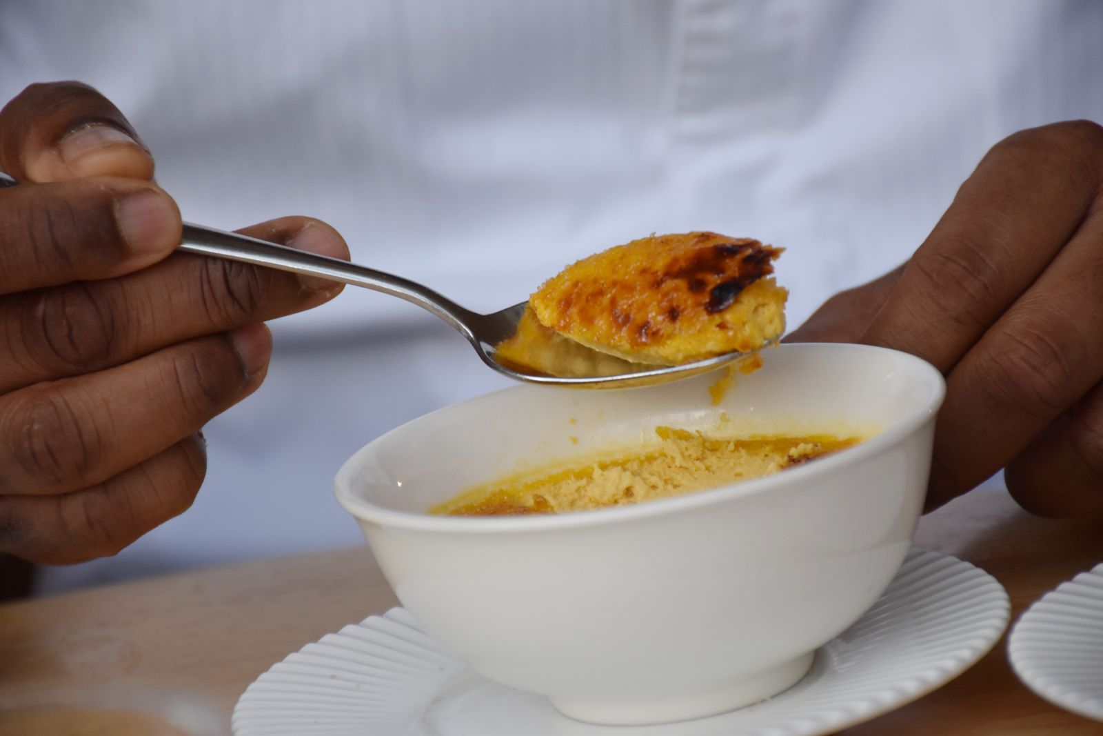 Derrière un immense sapin illuminé, sous la coupole iconique du Printemps Femme, le chef exécutif Xavier Pistol nous ouvre les portes de Bleu Coupole. Entre élégance parisienne, racines ultramarines et esprit new-yorkais, le chef fait honneur à Outremers 360° en partageant une recette festive aussi audacieuse que réconfortante : une crème brûlée au foie gras et à la patate douce. Une création raffinée, pensée pour être reproduite chez vous, à l’heure de l’apéritif ou en entrée sur vos tables de Noël.