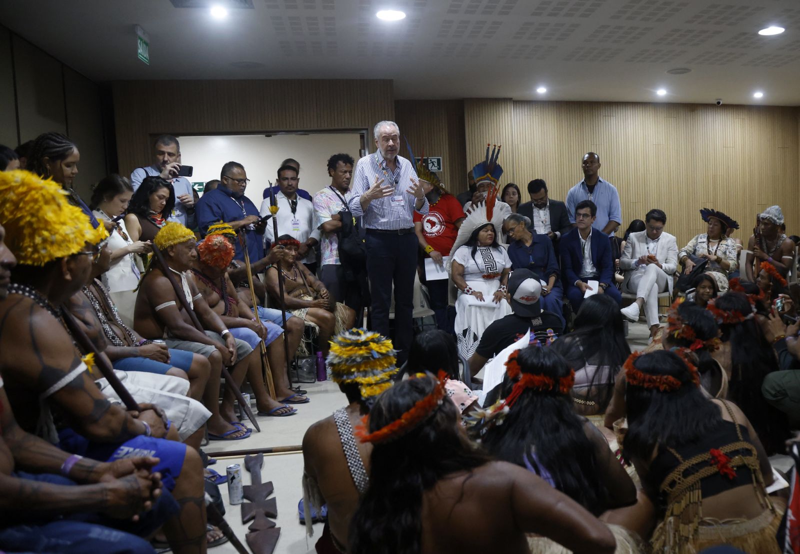 Vendredi matin, le rassemblement de membres de la communauté munduruku a semé un certain chaos et perturbé l'agenda des dizaines de milliers de délégués et d'observateurs. Il a aussi forcé le président de la conférence, André Correa do Lago, à annuler sa participation à des événements pour se rendre sur place et engager le dialogue.