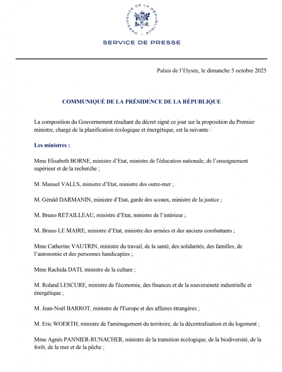 Près d’un mois après avoir été nommé Premier ministre, le 9 septembre dernier, Sébastien Lecornu a donc présenté son gouvernement et fait le choix de maintenir la plupart des ministres, dont Manuel Valls, appelé en décembre 2024 par François Bayrou, pour prendre le portefeuille des Outre-mer, devenu Ministère d’État.
