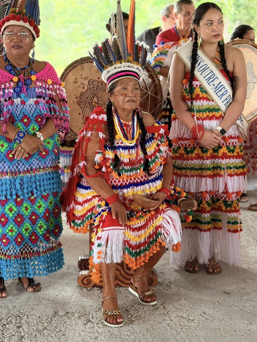 Au son du sanpula, sous le carbet communautaire, habitants, élus et proches se sont réunis pour assister à l’intronisation de la nouvelle Yopoto. Un moment solennel et chargé de spiritualité, salué par de nombreuses personnalités. Très émue, Roxanne Roland, fille de la cheffe coutumière et Miss Outre-mer 2025, a tenu à rendre hommage à celle qui lui a transmis les traditions :« C’était une cérémonie magnifique, très spirituelle. Depuis que je suis toute petite, elle m’a tout appris, la culture, les traditions… et c’est ce qui me rend fière aujourd’hui. »