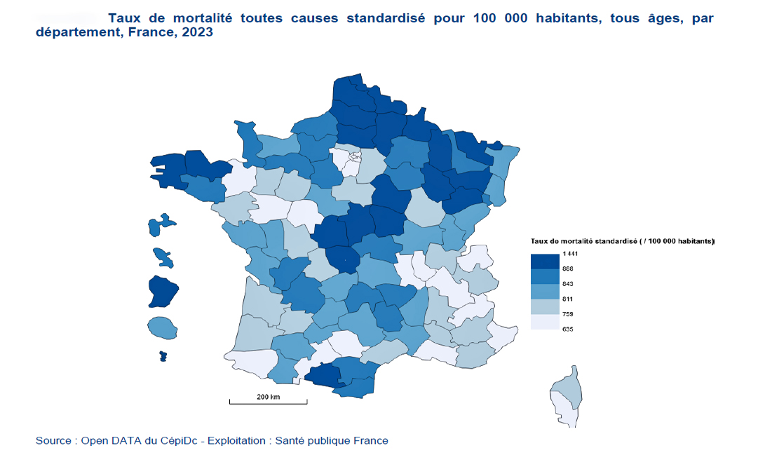 Santé publique France (SPF) vient de publier pour la première fois un bulletin régional dédié aux principaux indicateurs de mortalité par cause afin de décrire les tendances relevées jusqu’en 2023 aux niveaux régional et départemental. Cette étude vise également à identifier les principales causes de décès et leurs particularités. En 2023, le taux standardisé de mortalité tous facteurs confondus en Guyane a atteint 949,5 décès pour 100 000 habitants. Il s’agit du deuxième taux le plus élevé sur le plan national après Mayotte. Cette situation met en évidence des enjeux majeurs de santé publique dans un contexte marqué par d’importantes disparités territoriales et des défis sanitaires spécifiques à la Guyane.