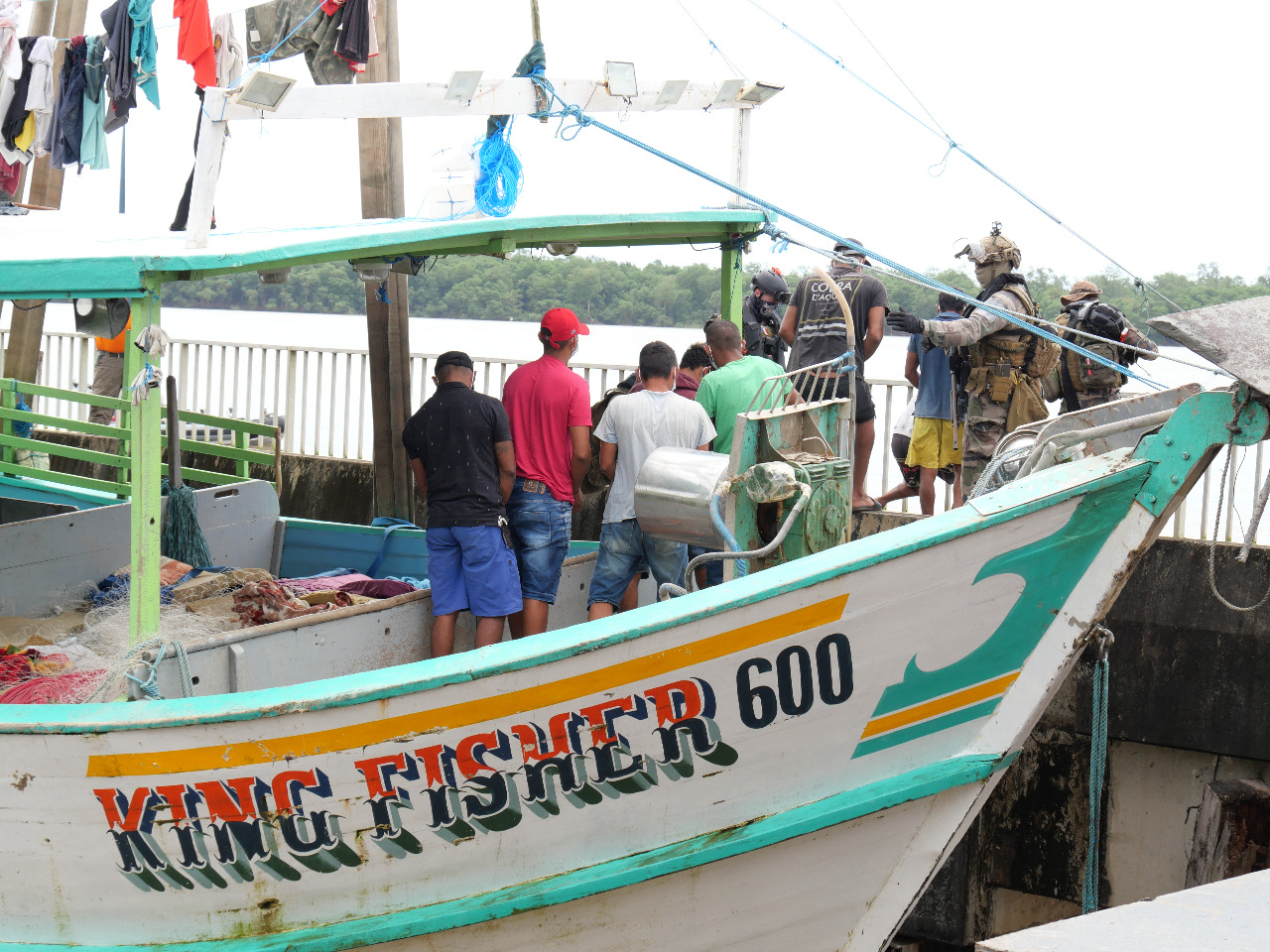 Sous la coordination du préfet de région, délégué du gouvernement pour l’action de l’État en mer, au titre de la police de pêche et de la conservation des ressources halieutiques, des opérations récurrentes sont déclenchées au large de la Guyane. Des actions où la présence des forces mobilisées réaffirment la souveraineté de la France, mais dont la vocation est de contrôler, arraisonner, dérouter et saisir des navires pris en flagrant délit de pêche illégale. Ces actions administratives sont possibles grâce à des moyens maritimes et aériens conséquents des Forces Armées en Guyane (FAG).