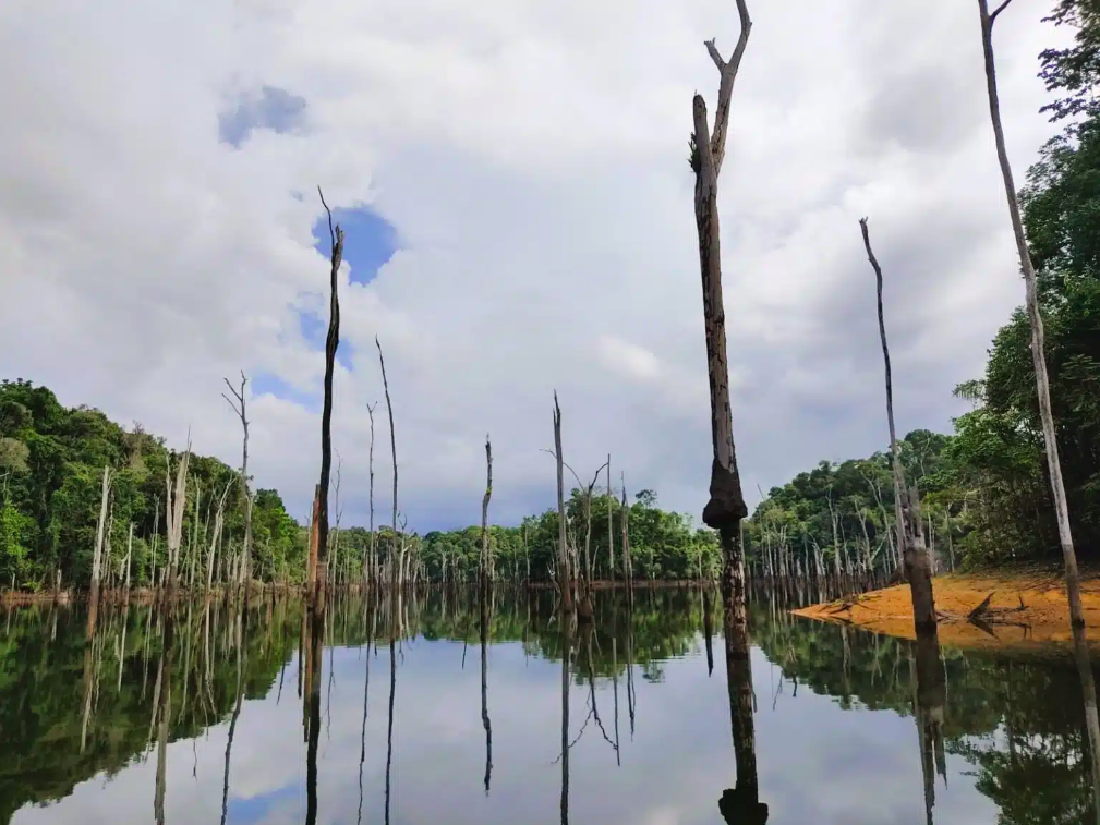 « Sur les 36 000 hectares du lac de Petit Saut, nous exploitons uniquement 12 à 13 000 hectares, soit à peine plus de 40% », détaille Élodie Delonca. « 60% de la ressource est donc conservée ». « En parallèle, on a des mesures spécifiques pour les espèces protégées : les grands oiseaux et les loutres géantes », assure-t-elle. Le principe d’exploiter du bois immergé, et donc « perdu », permet aussi d’ « éviter d’aller prélever en forêt naturelle ».