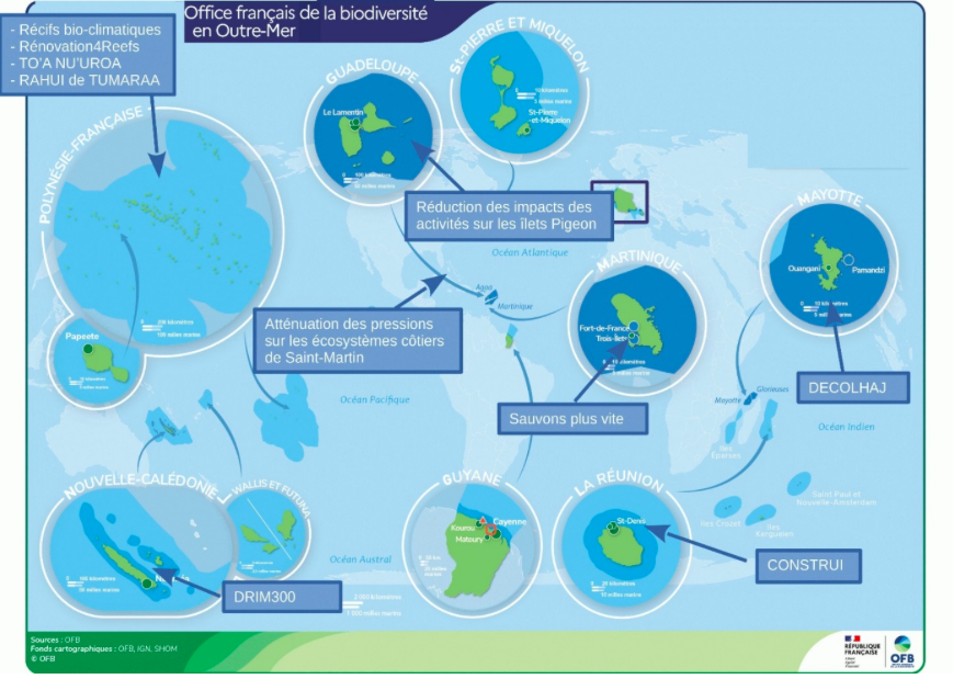 Soutenu par les ministères de la Transition écologique et de la Cohésion des territoires (MTECT) et de l’Intérieur et des Outre-mer (MIOM), il s’inscrit dans la déclinaison du plan national pour la protection des récifs coralliens mise en œuvre par l’État, dont l’objectif de protection a été étendu à l’ensemble des récifs coralliens français à l’horizon 2025. Les porteurs de projets bénéficieront de l’expertise technique de l’OFB dans le cadre de la construction et l’exécution de leur projet.