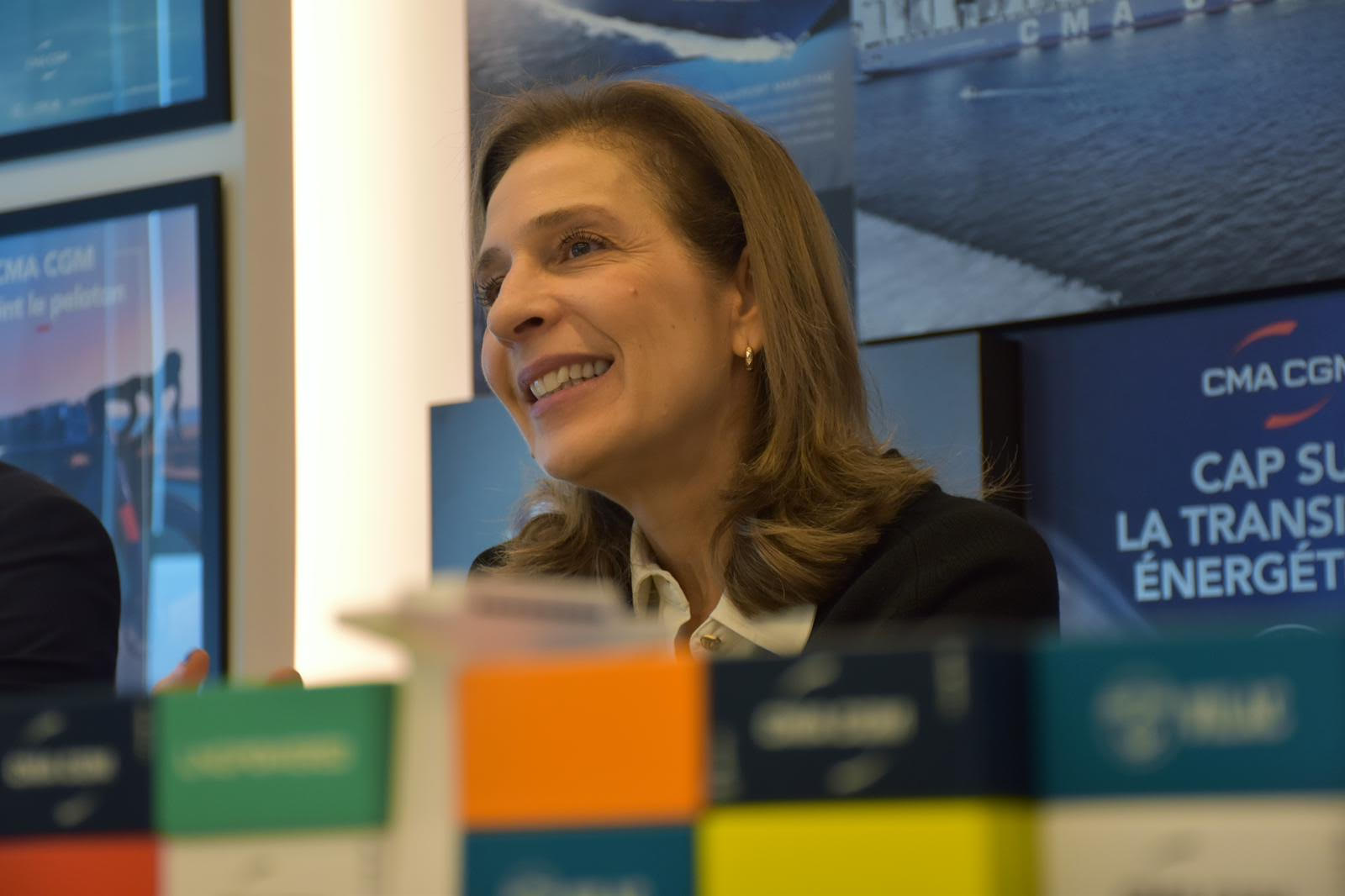 Au 29ᵉ étage, juste en dessous du dernier niveau réservé à la présidence du groupe, Tanya Saadé reçoit dans un vaste bureau baigné de lumière, ouvert sur la mer. La vue embrasse le port, les lignes d’horizon, les routes maritimes, comme un rappel constant de ce que représente CMA CGM : relier les mondes.