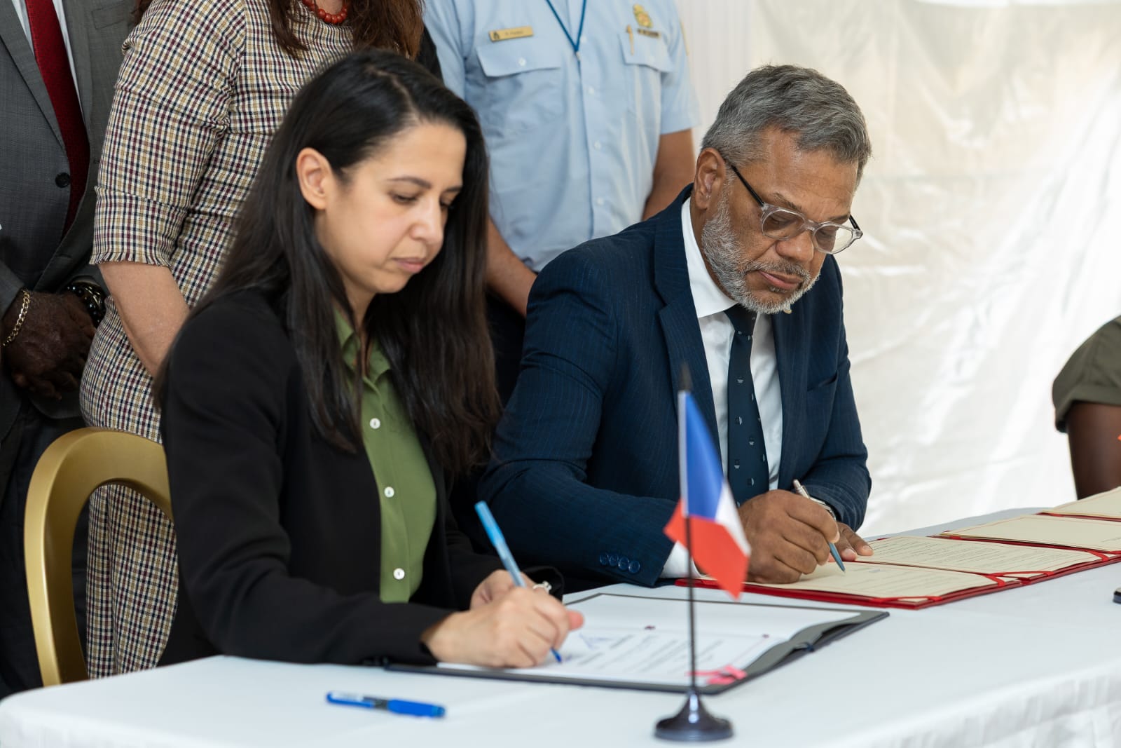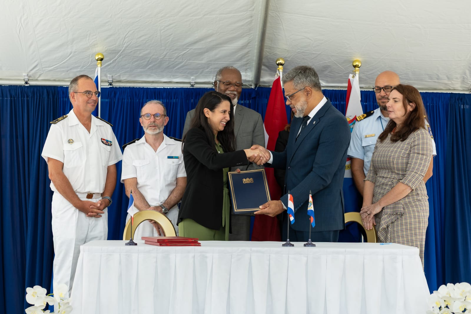 La ministre des Outre-mer Naïma Moutchou a signé mardi dans les locaux de la police de Sint Maarten, du côté hollandais de cette île franco-néerlandaise des Antilles, un accord relatif au droit de poursuite en mer entre la France et les Pays-Bas.