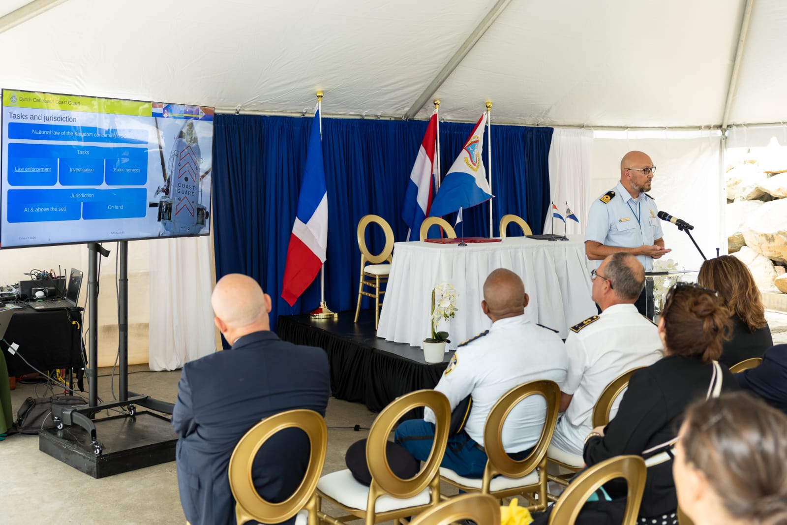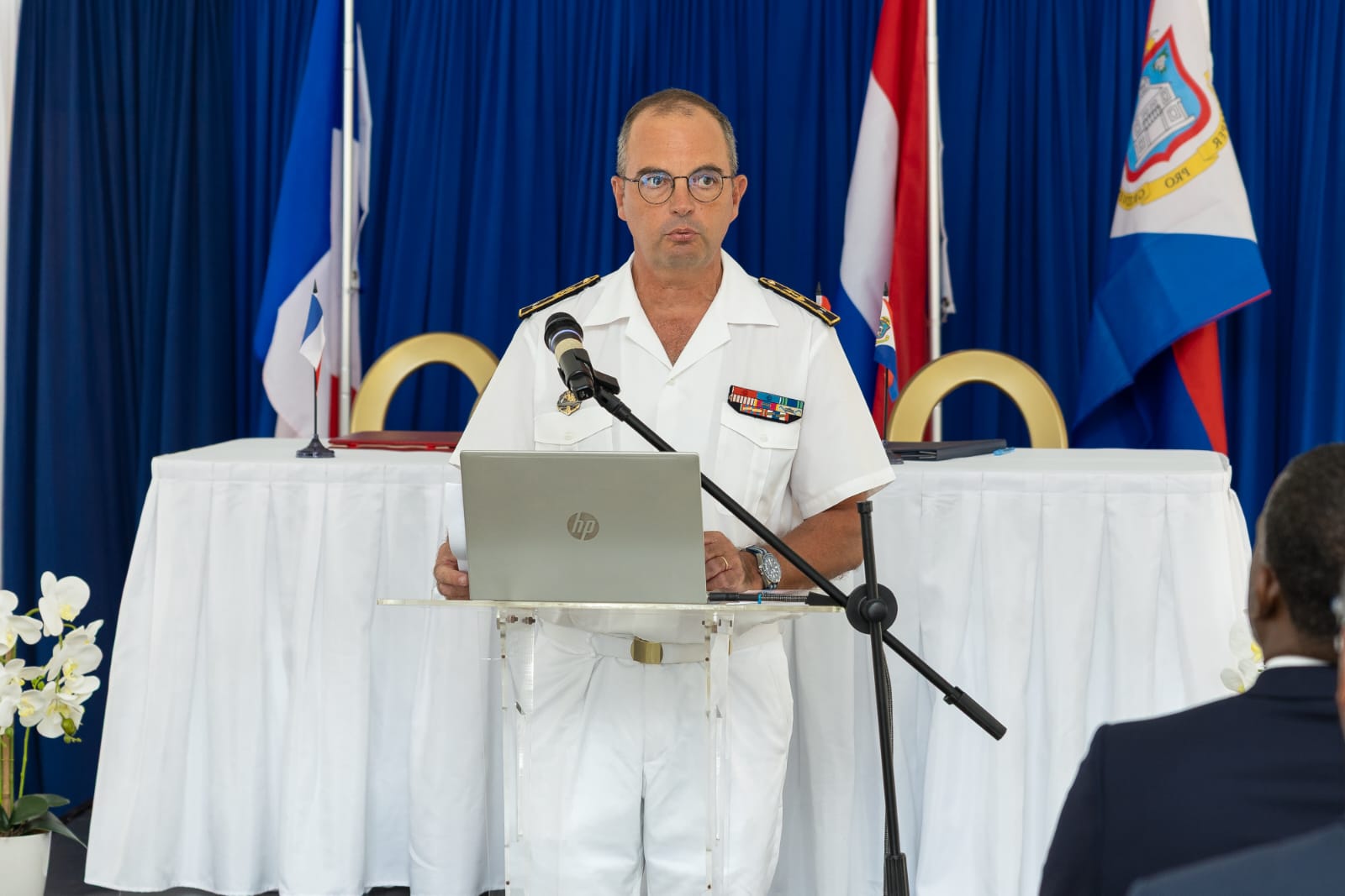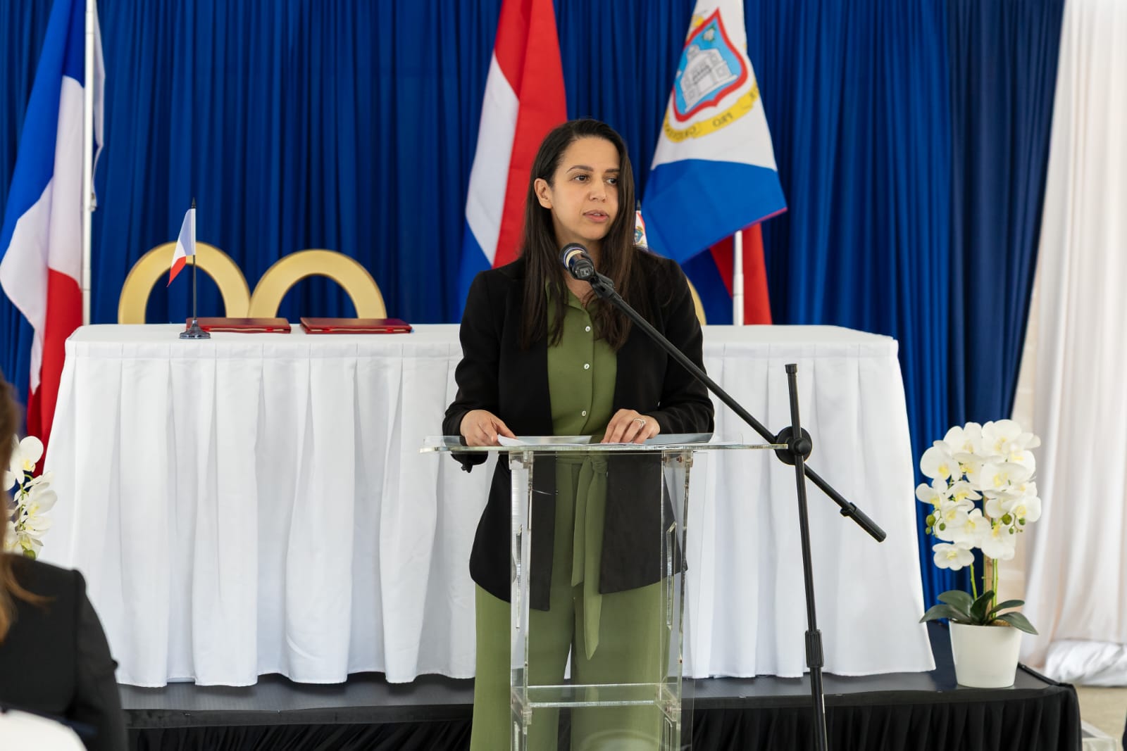 Lors de son discours, Mme Moutchou a évoqué le souhait d'une lutte commune à travers la volonté de la France de développer "avec ses partenaires européens et caribéens une académie européenne de formation contre les narcotrafics à Saint-Domingue".