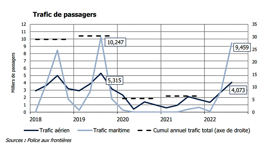 Il y a de bonnes nouvelles pour le secteur du tourisme. Au 3e trimestre, la filière se rapproche de son dynamisme d’avant la crise Covid : « la fréquentation touristique étrangère progresse une nouvelle fois sur un an pour atteindre 8600 personnes, proche des 9576 enregistrées au 3e trimestre 2019 (-10,2%, en variation sur 36 mois). A noter que le nombre de croisiéristes surpasse celui observé au 3e trimestre 2019 (+8,2%), soit un total de 3260 croisiéristes entre juin et septembre 2022 », note l’IEDOM. Par ailleurs, le trafic maritime et aérien a continué d’augmenter sur un an pour se rapprocher de son précédent niveau, bénéficiant des nombreuses rotations de ferries et de la reprise des vols directs vers l’Hexagone sur la période. L’ouverture d’un Centre d’information touristique à Terre-Neuve, au Canada, a également profité au tourisme sur l’archipel.