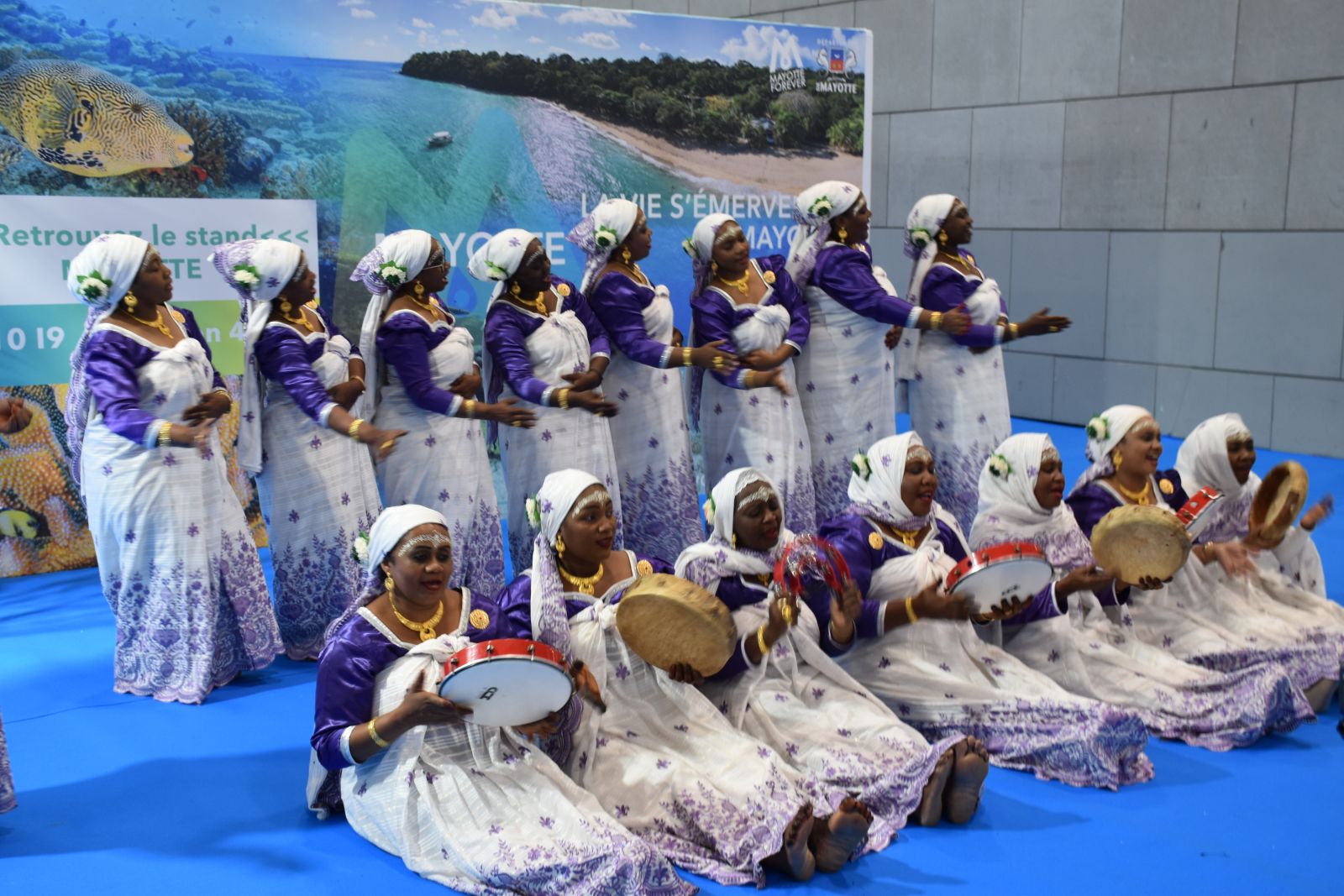 Les équipes sont accompagnées de prestataires d’activités nautiques encore en activité, et d’un hors-série gratuit distribué sur le salon. « Ce magazine permet aux futurs plongeurs de retrouver les prestataires, des informations sur l’île, le budget, tout ce qu’il faut pour organiser son voyage », précise-t-elle. Le stand de Mayotte se distingue également par des prestations culturelles de débaa, un chant traditionnel mahorais inscrit au patrimoine culturel immatériel, proposées plusieurs fois par jour, dès l’entrée du salon.