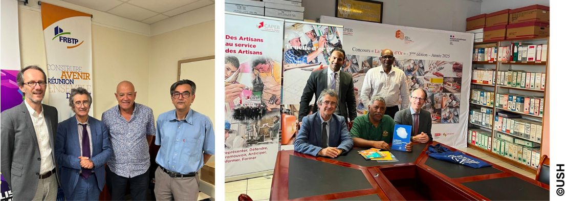 Les réunions avec la CAPEB Réunion et la Fédération Réunionnaise du BTP (FRBTP) ont permis d’aborder les besoins en main-d’œuvre, les coûts de construction et les enjeux de montée en compétence des entreprises locales et les freins réglementaires affectant le territoire.La découverte du LABIMAC SA, porté par Bruno Malet-Damour et ses équipes, pôle d’innovation et de formation dédié aux matériaux et à la construction durables, a illustré la capacité de l’île à anticiper les défis climatiques et à innover dans ses pratiques constructives.