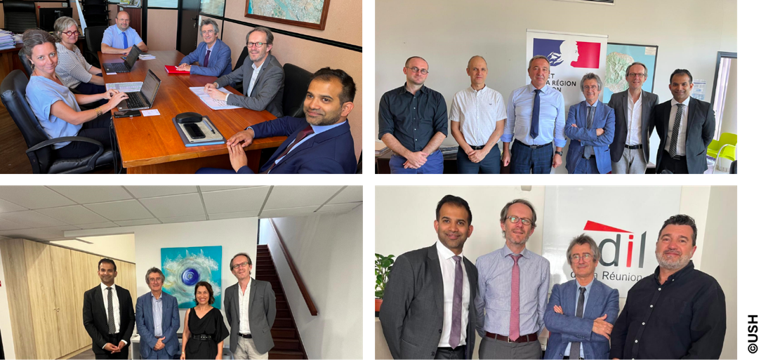 Un temps d’échanges collectif avec l’Association Régionale des Maitres d’Ouvrage Sociaux de l’océan Indien (ARMOS-oi) avec sa Présidente Valérie Lenormand, Directrice générale de la SHLMR, et Denis Chidaine, délégué de l’ARMOS, ainsi que les directrices et directeur généraux des sept bailleurs sociaux du territoire a permis de partager les priorités partagées : financement, innovation foncière, production et accompagnement des ménages.