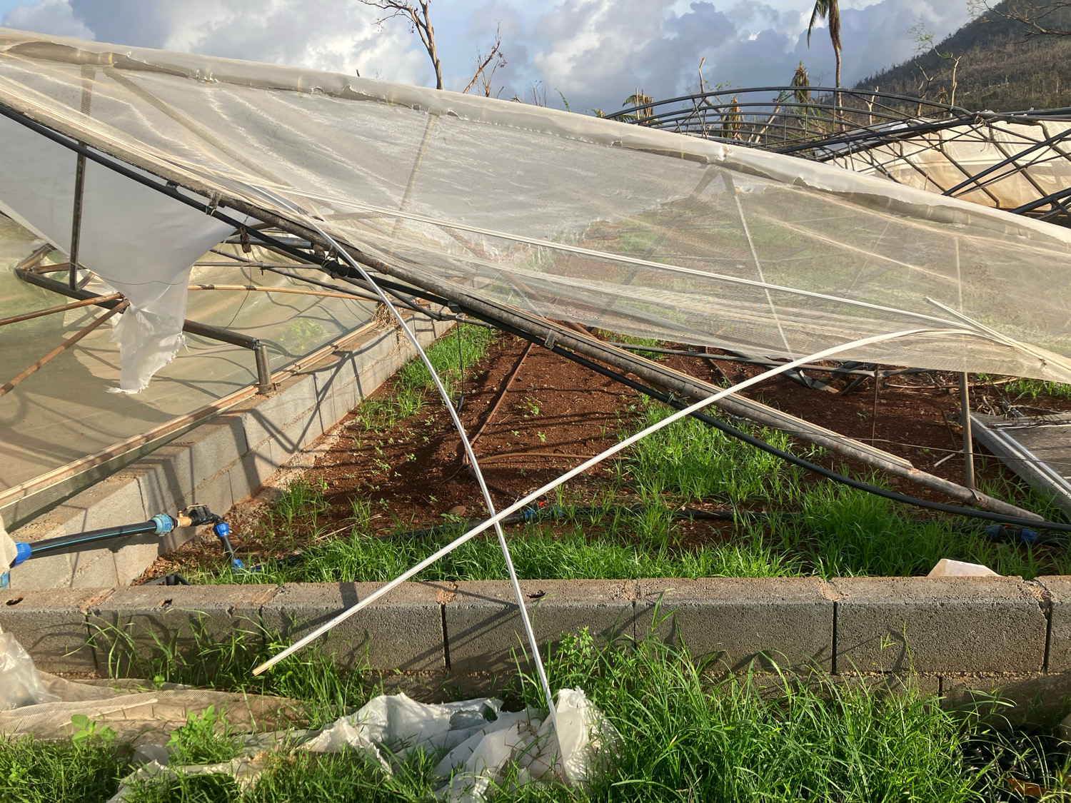 Les premiers légumes sortent de terre, la végétation reprend peu à peu sa place et les milliers de nouvelles pousses teintent de vert les champs encore marqués par la catastrophe. À Mayotte, si les agriculteurs commencent à retrouver le sourire, c’est parce qu’ils sont passés par des heures sombres. Les taules grisâtres, déchets par centaine et bout de fils électriques qui pendent encore sur certaines exploitations prouvent que Chido n’est pas loin.