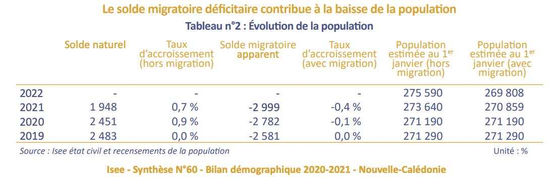 Craintes sur l'avenir du territoire après trois référendums d'autodétermination qui n'ont pas permis d'aboutir pour le moment à un nouveau statut et fermeture des frontières pendant deux ans en raison de la crise sanitaire mondiale expliquent ce phénomène, selon l'Isee.