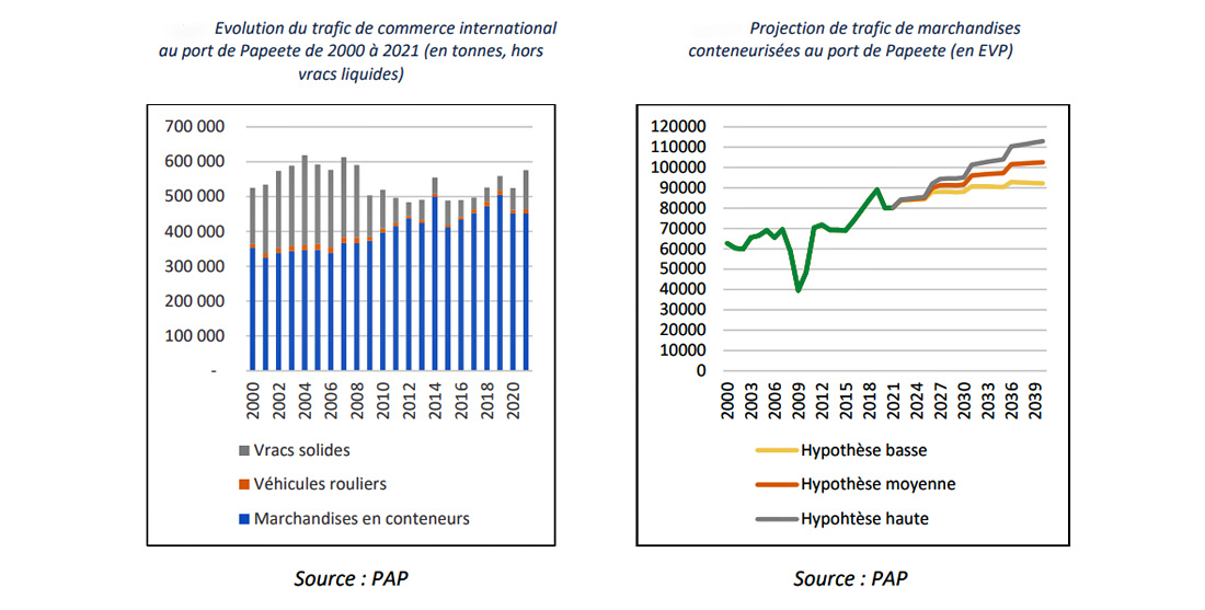 Le Port autonome de Papeete (PAP) a enregistré en 2024 un trafic total de 1,4 millions de tonnes (Mt), soit une progression de 3,4%. Cette hausse ne suffit pas toutefois à compenser entièrement le recul de 4% observé en 2023 : le niveau de 2024 demeure ainsi 1,2% inférieur à celui atteint en 2022. Les flux liés au commerce international représentent toujours 69% du total, une proportion inchangée ces dernières années.