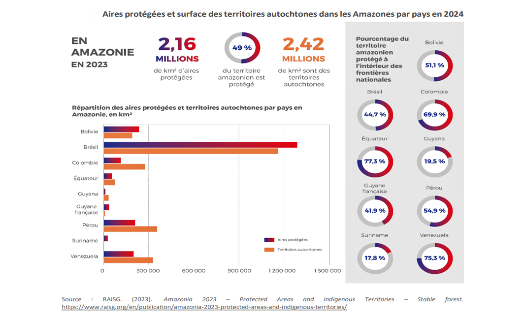 Depuis 1998, l’Organisation du traité de coopération amazonienne (ACTO) représente le principal cadre régional dédié à la gestion collective du biome amazonien, avec un accent particulier sur la lutte contre la déforestation. Plus récemment, le Pacte de Leticia, signé en 2019 par les mêmes pays (Bolivie, Brésil, Colombie, Équateur, Guyana, Pérou et Suriname) — à l’exception du Venezuela — a visé à renforcer la coordination face aux crises environnementales et à mettre en place des outils de surveillance satellitaire de la forêt. Toutefois, l’ACTO comme le Pacte de Leticia se heurtent à des blocages politiques et institutionnels. La difficulté majeure tient à la prééminence des souverainetés nationales, qui limite l’émergence d’une véritable gouvernance pan-amazonienne.