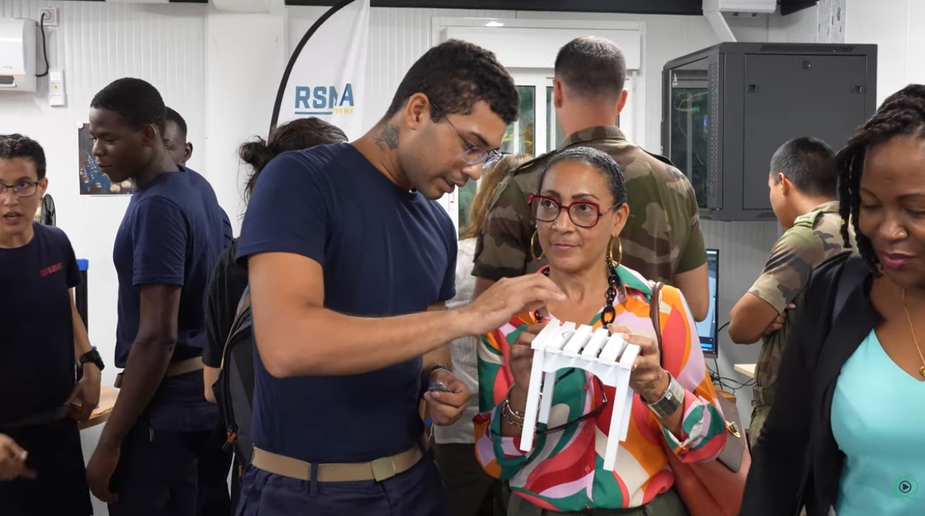 À leur arrivée, près de 70 % des jeunes engagés au RSMA se trouvent en situation d’illettrisme. Un défi pédagogique majeur, qui rend nécessaire d’apposer une approche numérique à la formation militaire, civique et professionnelle déjà en place. C’est dans ce contexte qu’a été créé le FabLab au sein du camp de Saint-Jean-du-Maroni : « Bien plus qu’un simple espace technologique, ce FabLab constitue une réponse éducative innovante. En s’appuyant sur la pratique et le visuel, il contourne l’obstacle de l’illettrisme et ouvre un accès concret aux savoirs fondamentaux. Les jeunes y découvrent les bases de la culture digitale, tout en fabriquant des objets en 3D, une approche qui transforme l’apprentissage en expérience tangible, gratifiante et surtout valorisante. » précise Chantal Maurice.