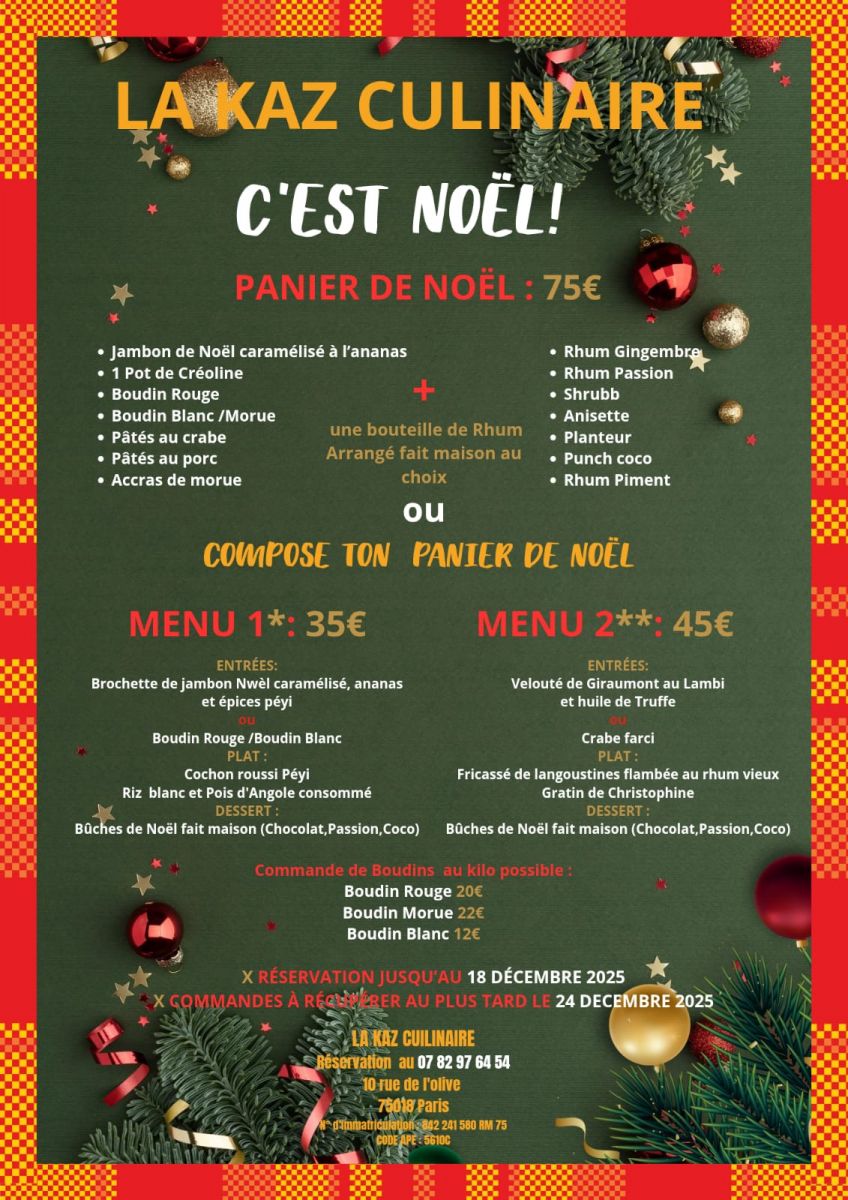 En cette période de fêtes de fin d’année, La Kaz Culinaire se met à l’heure de Noël. Un menu spécial a été imaginé pour celles et ceux qui souhaitent retrouver les saveurs du pays sur leur table. Les commandes sont ouvertes jusqu’au 18 décembre, avec un retrait possible jusqu’au 24 décembre au soir. Des plats pensés pour être emportés, partagés en famille, parfois même glissés dans une valise pour rejoindre la province et recréer, le temps d’un repas, un Noël antillais.