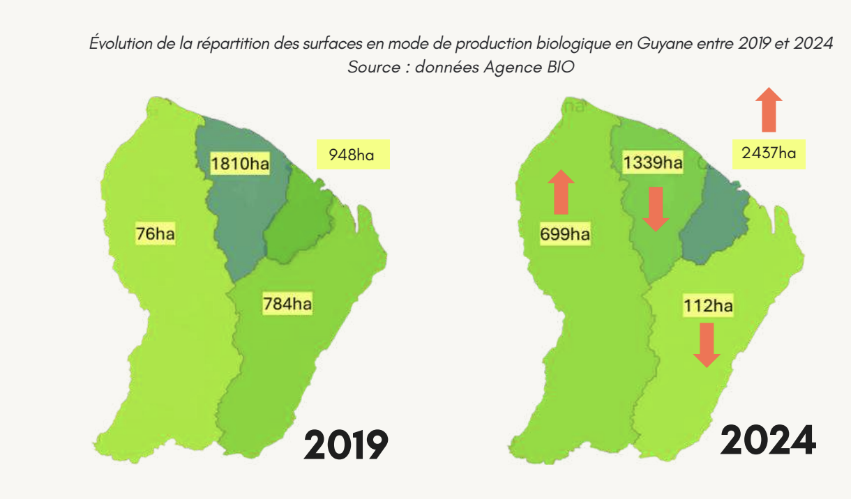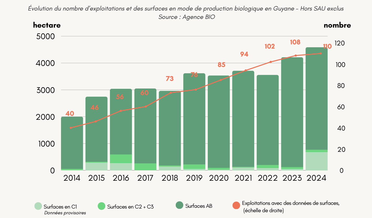 En dix ans, le nombre de producteurs bio est passé de 40 à 120 en Guyane. Aujourd’hui, ce territoire figure parmi les régions françaises où la part de surface agricole utile (SAU) dédiée au bio atteint environ 12 % l’an dernier. Précisions avec notre partenaire Radio Péyi.